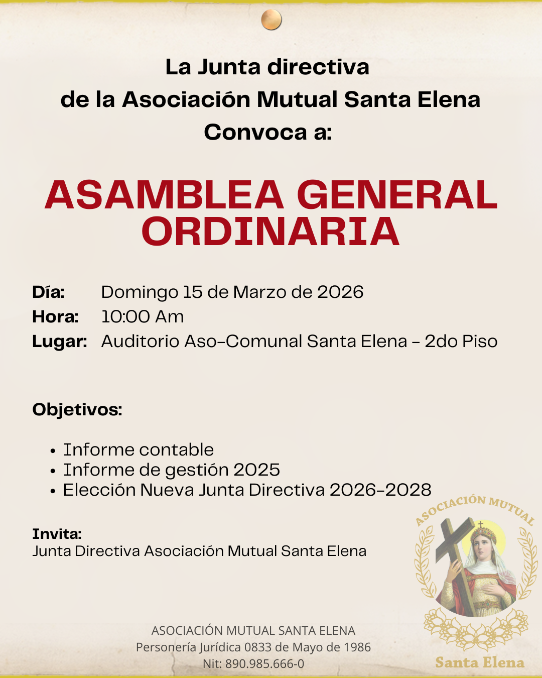Invitamos a todos los asociados a participar de la asamblea general ordinaria el próximo 15 de marzo de 2026.